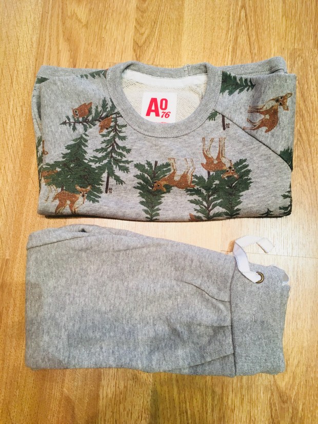 AO76 sweater 4j en 10j , normale prijs €69,90, nu aan €42 / broekje 4jaar, normale prijs €54,90, nu aan €33