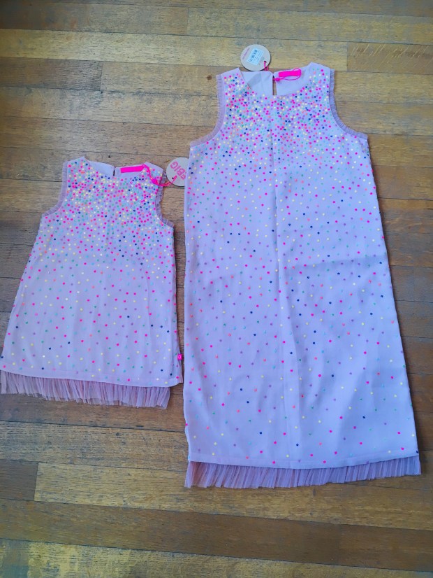 Macaronkleedjes in 10 en 12j, normale prijs ā¬99,9, nu voor ā¬45. Merk Blue bay