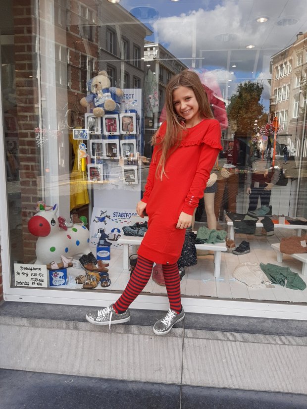 Sweaterdress rood en dark grey: €24 ipv €39,95
