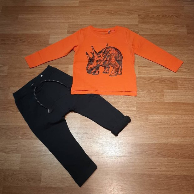 Dino sweater €19,99. Aanpasbare jogpants €19,99