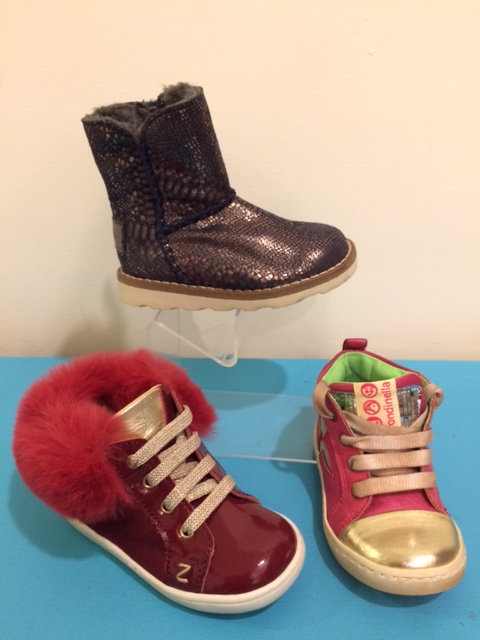bovenaan: Laarsje (blauw met gouden sparkels) – Merk: Pinocchio –Originele prijs: €89,95 – Nu: €50